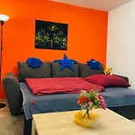 Ubytování má také kompletní kuchyni i satelitní TV, Wi-Fi a jídelnu v každém pokoji. Součástí tohoto 1-pokojového apartmánu je také rychlovarná konvice, chladnička a kuchyňské nádobí. Ložnice je oddělená a je v ní pohovky a dvojlůžka. Fén a ručníky zásobují koupelnu.